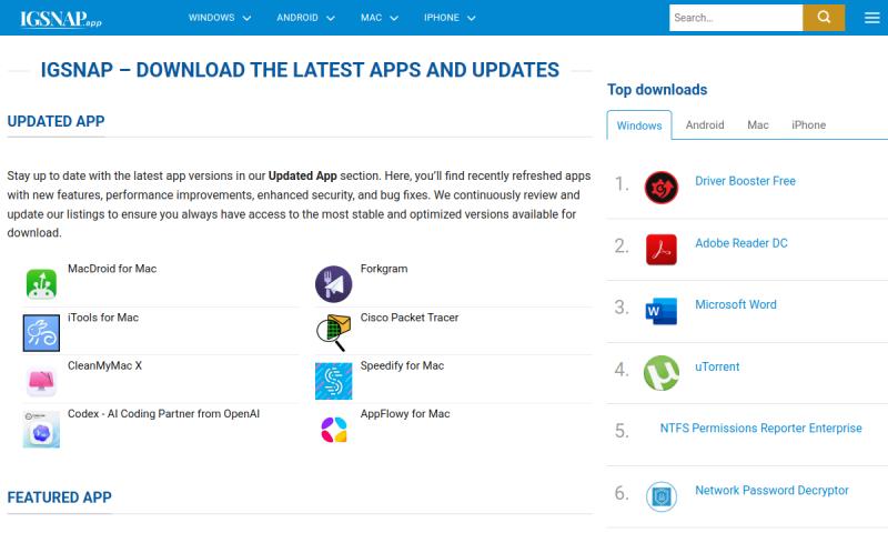 IGSNAP provides a comprehensive and easy-to-navigate platform for downloading software and mobile applications, offe... more